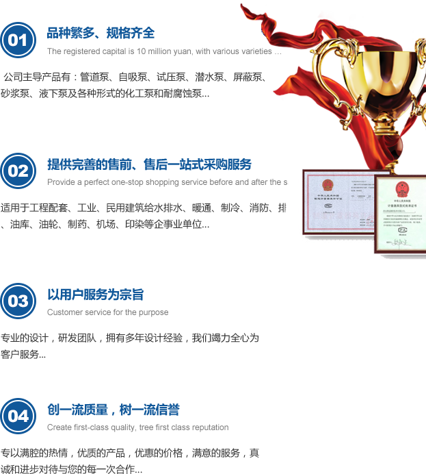 洛集泵業(yè)一直堅(jiān)持以質(zhì)量求生存、品質(zhì)求發(fā)展,不斷開(kāi)拓創(chuàng)水泵的發(fā)展領(lǐng)域??蛻?hù)們的滿(mǎn)意與成功就是度量我們工作成績(jī)的重要的標(biāo)尺。秉著"百折不撓、勇攀高峰"的精神,為打造"國(guó)際品牌、百年水泵"而不懈努力!竭誠(chéng)歡迎海內(nèi)外各界人士,攜手共創(chuàng)輝煌!